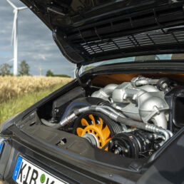 Im KAEGE RETRO® TARGA arbeitet eine komplett revidierte Maschine aus dem 993 – und damit die beste luftgekühlte Serientechnik, die im Schwäbischen jemals verbaut wurde. Fein zerlegt, geprüft, feingewuchtet und neu zusammengesetzt nimmt sich das Aggregat äußerst kultiviert, laufruhig und standfest aus. Der Motor ist wartungsarm und OBD-fähig.