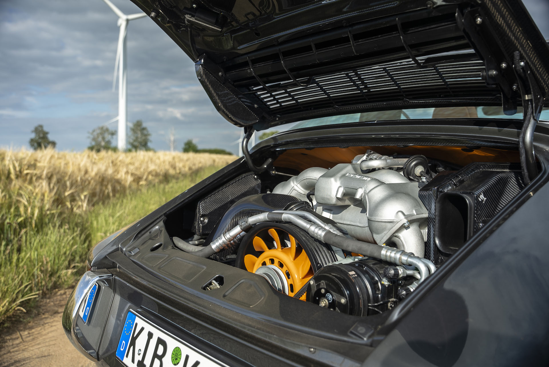 Durch die Verwendung von Carbonbauteilen haben wir die authentische Wirkung nicht nur um moderne Komponenten ergänzt, sondern gegenüber dem originalen 993 auch eine Gewichtsersparnis von über 150 Kilogramm erreicht. Zeitgemäße Leichtbauweise, die sich im Fahrzeughandling und im Verbrauch stark bemerkbar macht.
