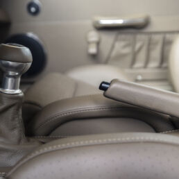 Klassisch interpretierte Messanzeiger, High-End Radio-Navigationssystem im Vintage-Look und ein Armaturenbrett für ein konsequentes Innenraumdesign. Diverse Kleinteile beledert, Interieurteile nach Wunsch lackiert, Holz-, Carbon- oder Lederoptik im Armaturen- und Schalttafelbereich (Plus-Paket).